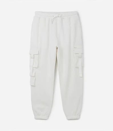 Ref: Calça jogger em moletom , com cintura elástica, cós com amarração, barra elástica e detalhe moderno de bolsos táticos nas laterais.