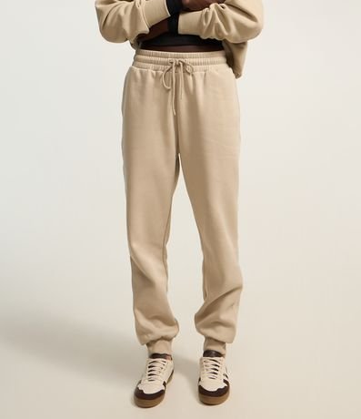 Calça jogger com cós elástico, cordão para ajuste e confeccionada em moletom com forro fleece.