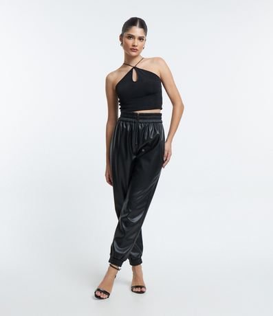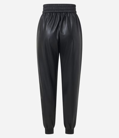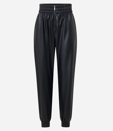 Calça Jogger em Pu com Lastex na Cintura e Zíper Tratorado