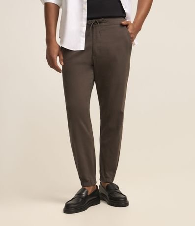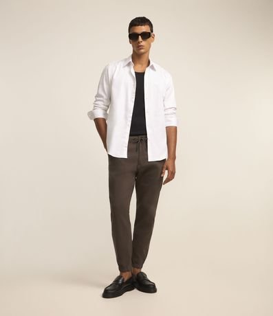 Calça masculina em sarja, com amarração e sem estampa. O cós elástico, característico do modelo, adiciona em estilo e garante melhor fit. Despojada e cheia de estilo, a peça é uma opção confortável para compor visuais elegantes.