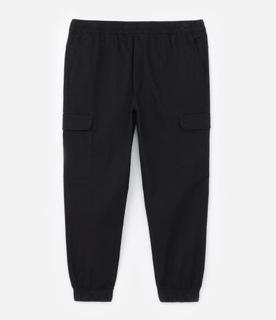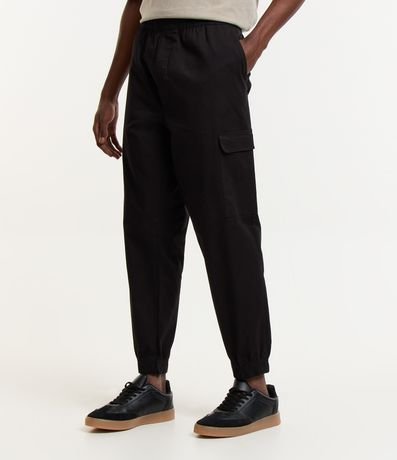 Ref: Calça masculina no modelo jogger, confeccionada em sarja, com bolsos cargo. Proporciona flexibilidade e conforto.