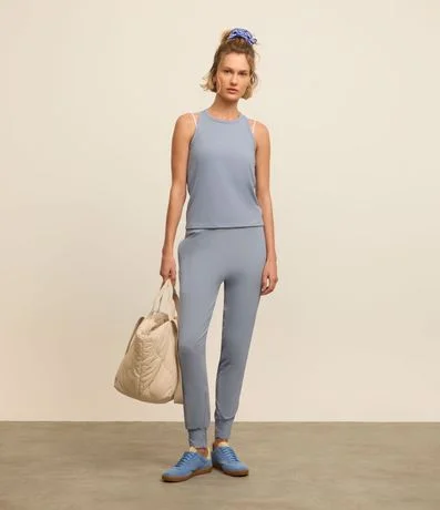 A calça jogger tem a modelagem um pouco mais soltinha do corpo e com a barra ajustada, tendo elástico ou amarração na cintura. Traz conforto na hora de praticar exercícios.