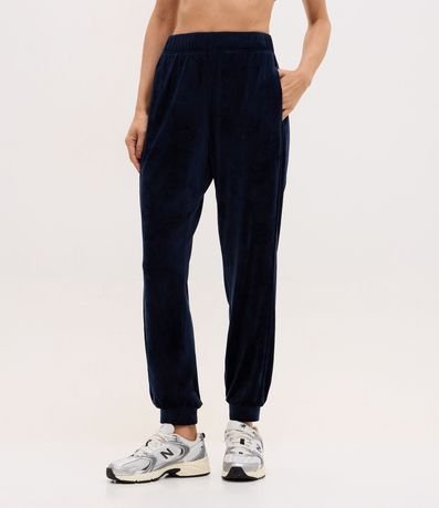 Ref: Calça feminina esportiva em veludo com modelagem reta, cós com elástico embutido para melhor ajuste, bolsos laterais e barras afuniladas que oferecem acabamento moderno.