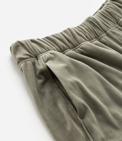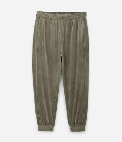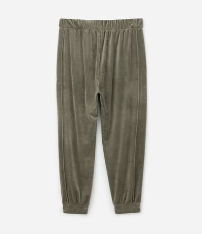 Calça jogger confeccionada em plush com cintura elástica e bolsos laterais. A peça é ideal para praticar esportes ou passeios casuais.