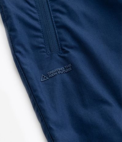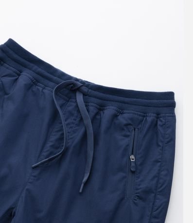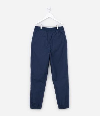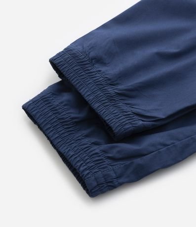 Ref: Calça jogger infantil em algodão, com cintura elástica, cós com cordinha para ajuste, bolsinhos com zíper, barra elástica e recortes nos joelhos.