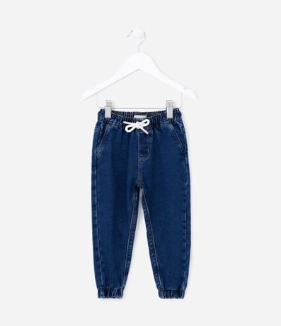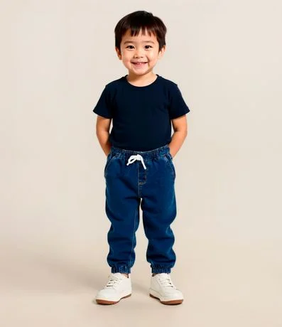 Ref: Calça jogger infantil, confeccionada em jeans, com cós elástico.