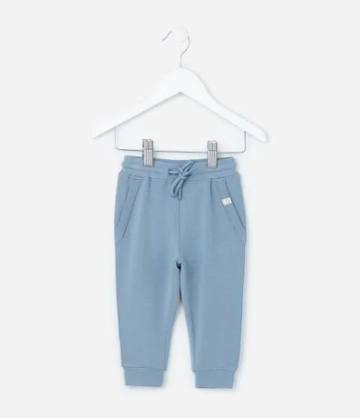 Ref: Calça infantil confeccionada em modal e poliéster, de modelo jogger, com amarração na cintura e sem estampa.