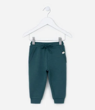 Ref: Calça infantil confeccionada em modal e poliéster, de modelo jogger, com amarração na cintura e sem estampa.