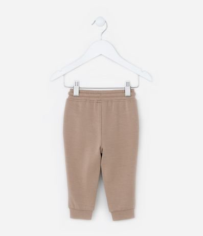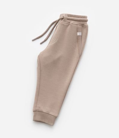 Ref: Calça infantil confeccionada em modal e poliéster, de modelo jogger, com amarração na cintura e sem estampa.