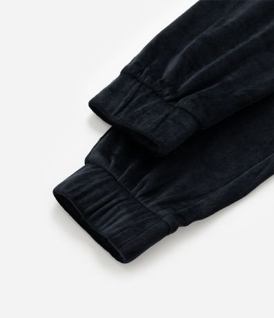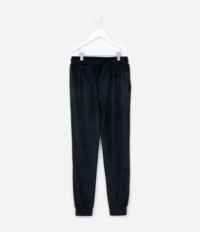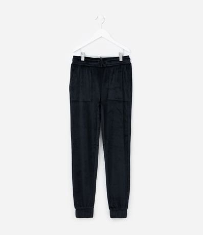 Ref: Calça infantil de modelo jogger, confeccionada em tecido plush, quentinho e de toque aveludado. Possui elástico nos punhos, bolsos funcionais e amarração na cintura.
