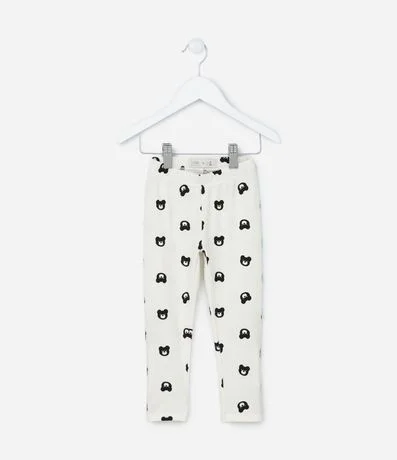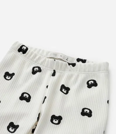 Calça Legging Canelada com Estampa Ursinho - Tam 1 a 6 Anos