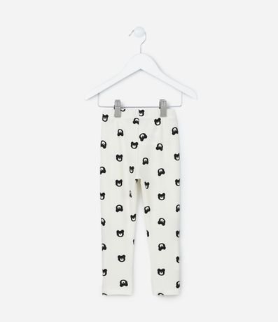 Calça infantil de modelo legging, com cós elástico, canelada e com estampa ursinhos. Feita a partir de material e processo mais sustentável.