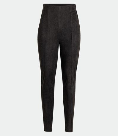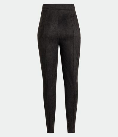 Calça legging em material sintético com abertura lateral por zíper. Seu diferencial se dá pelos frisos verticais.