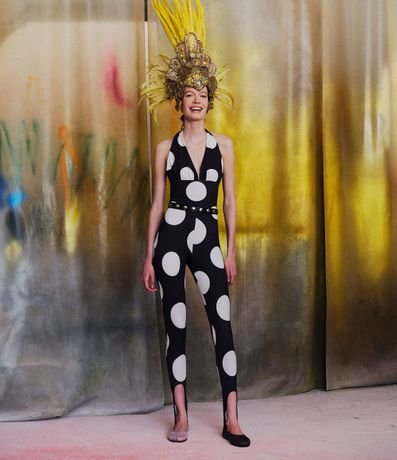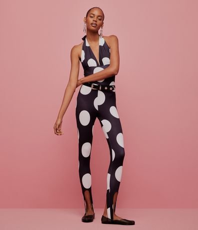 Ref: Calça feminina confeccionada em microfibra, no modelo leggig, com estampa poá.