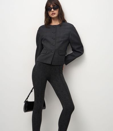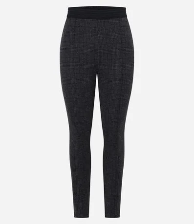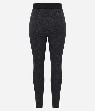 Calça legging feminina em malha ponto roma, com estampa marcada, nervura frontal e cós alto com elástico.