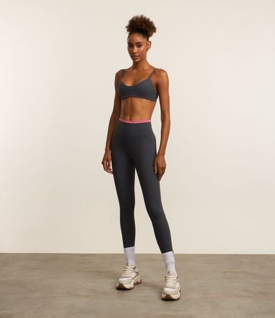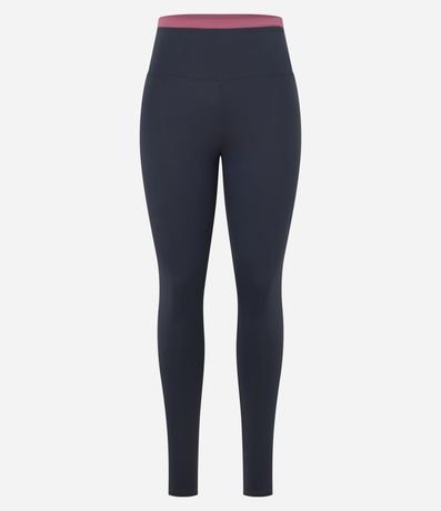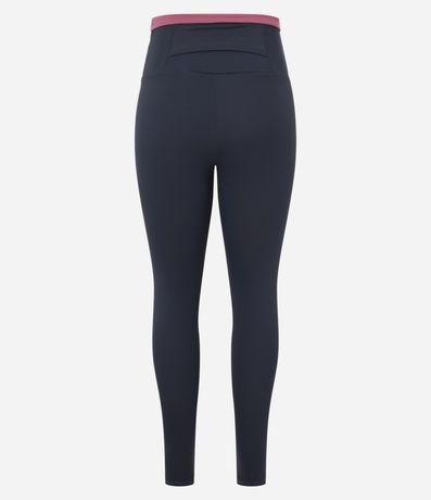 Calça legging esportiva confeccionada em microfibra e com cós largo e contrastante.
