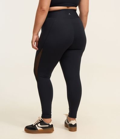 Ref: Calça esportiva em poliamida com tecnologia dry. A calça modelo legging tem cós alto, bolso funcional interior e recortes de tule na perna.