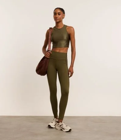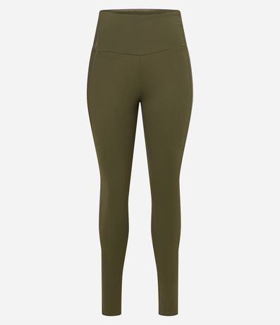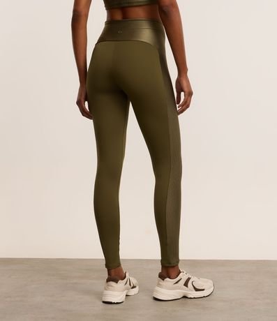 Ref: Calça feminina esportiva confeccionada em microfibra no modelo legging com cós alto e textura canelada.
