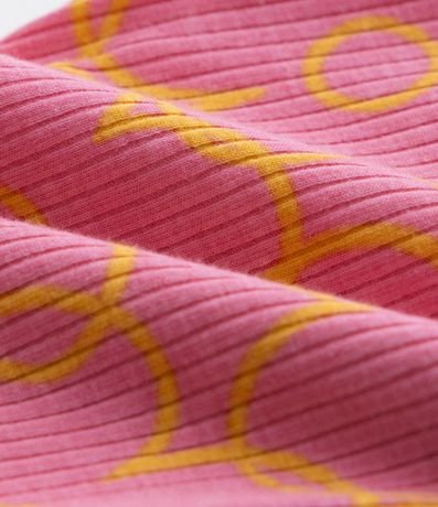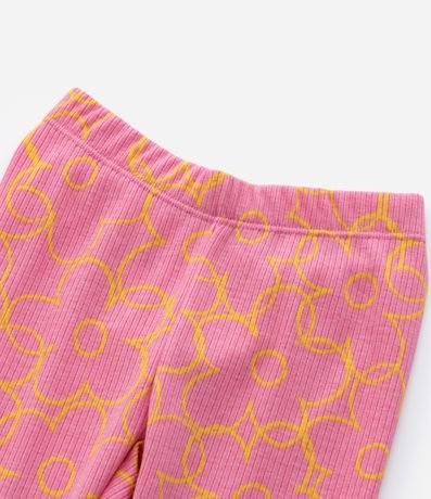 Ref: Calça infantil de modelo legging, com cós elástico, textura canelada e estampa de florzinhas. Feita a partir de processos de boas práticas ambientais e material de pet reciclado, este item é mais sustentável.