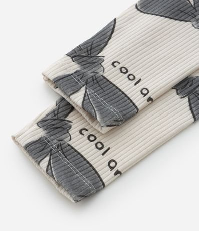 Calça infantil de modelo legging, com textura canelada, confeccionada em algodão mais sustentável. Possui cós elástico e estampa laços.
