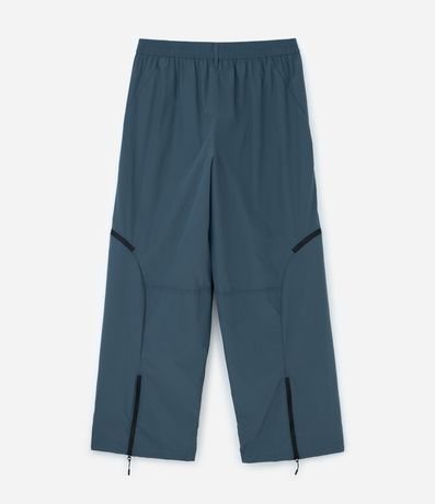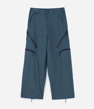Calça masculina confeccionada em microfibra de poliéster mais sustentável, com acabamento liso, seis bolsos funcionais e detalhe na perna, ideal para um visual fashion e utilitário no dia a dia.