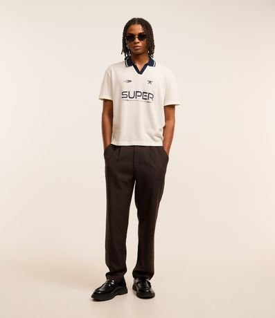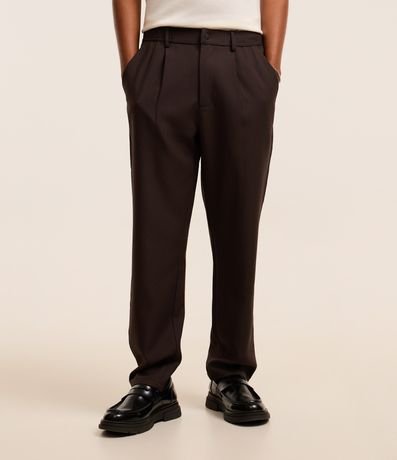 Ref: Calça social masculina, confeccionada em poliéster e viscose, de corte alfaiatado, com pregas e bolsos. O item é de modelo loose e com fechamento tradicional frontal.