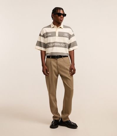 Ref: Calça social masculina, confeccionada em poliéster e viscose, de corte alfaiatado, com pregas e bolsos. O item é de modelo loose e com fechamento tradicional frontal.