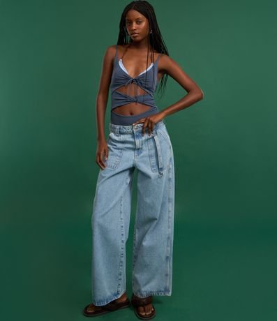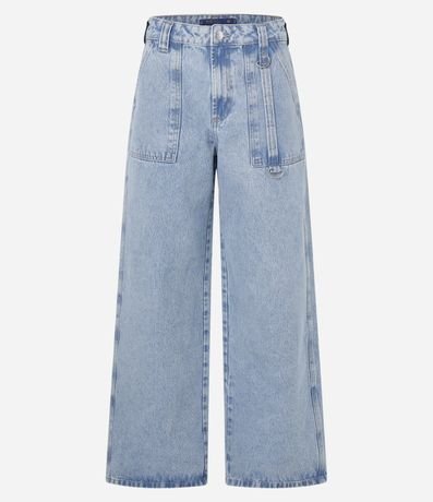 Calça Loose Cintura Baixa em Jeans com Bolso Carpinteiro