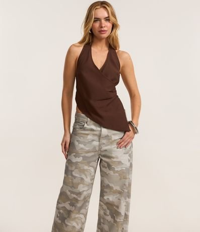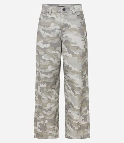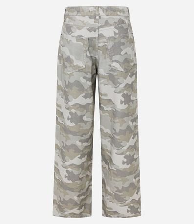 Calça loose, confeccionada em jeans, com passantes no cós, fechamento tradicional, bolsos e estampa camuflada. Este produto possui algodão certificado BCI em sua composição, sendo ambientalmente mais responsável.