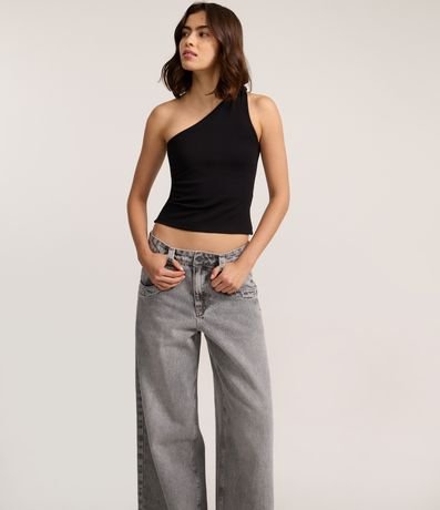 Calça loose confeccionada em jeans, lavagem dirty com cintura baixa, passantes largo no cós e bolsos diferenciados.
