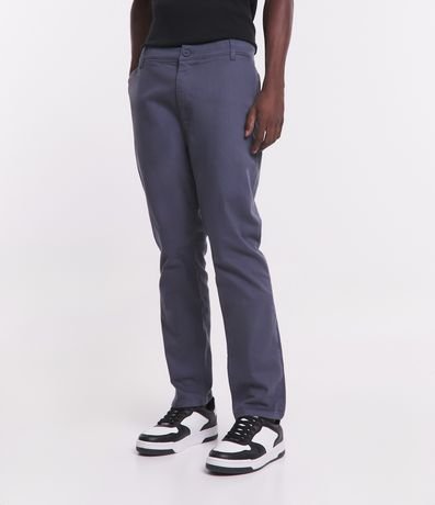 Calça masculina skinny confeccionada em sarja com algodão mais sustentável. Modelo inspirado no social, com cós com passantes, fechamento por botão e zíper. Ideal para looks elegantes com conforto e versatilidade.