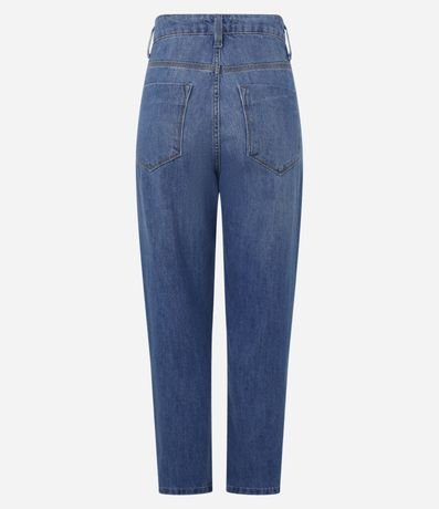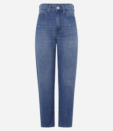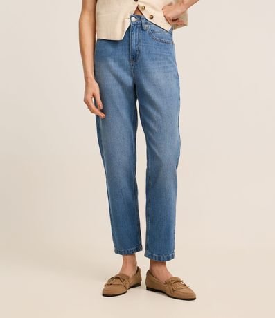 Ref: Calça mom comfort de cintura alta, confeccionada em jeans, com passantes no cós, fechamento tradicional e bolsos. Este produto possui algodão certificado BCI em sua composição, sendo ambientalmente mais responsável.