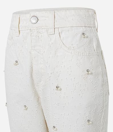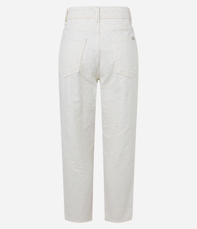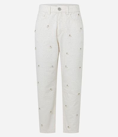 Calça Mom Comfort em Sarja com Laser e Bordado de Brilhos