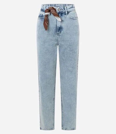Ref: Calça mom comfort, confeccionada em jeans, com passantes no cós, fechamento tradicional e bolsos. Inclui cinto lenço estampado. Este produto possui algodão certificado em sua composição, sendo ambientalmente mais responsável.