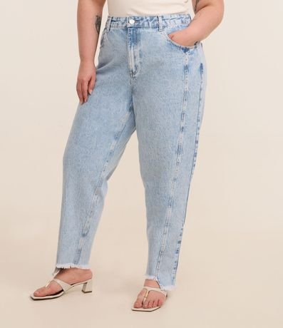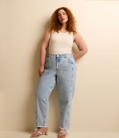 Calça Mom em Jeans com Tachas e Barra Desfiada Curve & Plus Size