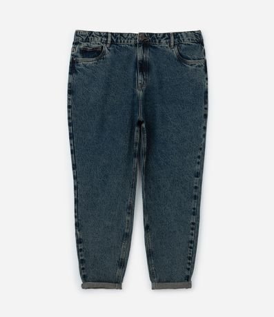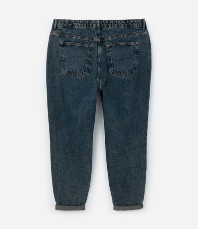 Ref: Calça jeans, modelo mom, com lavagem dirty e elástico no interior da cintura para ajuste. Experimente usar com a barra dobradinha!