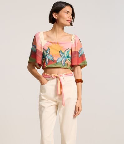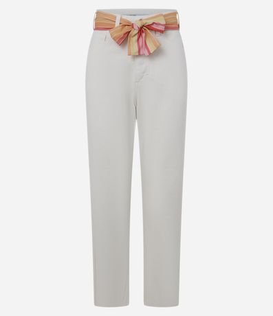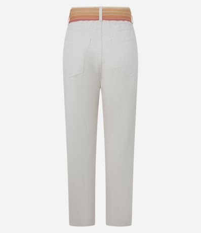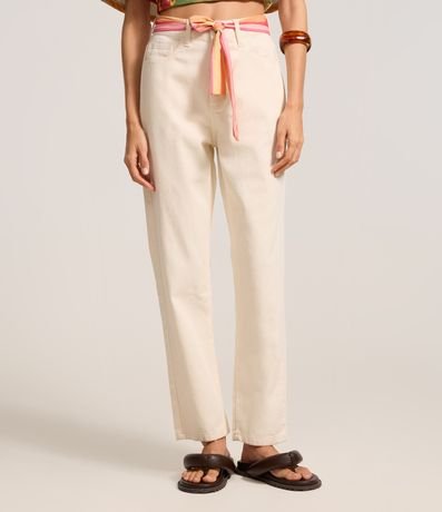 Ref: Calça mom confeccionada em sarja com algodão bci mais sustentável, cinto faixa no cós e bolsos frente e costas.