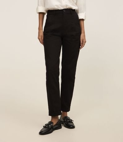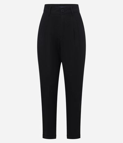Calça mom confeccionada em jeans, passantes no cós e cintura alta.
