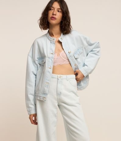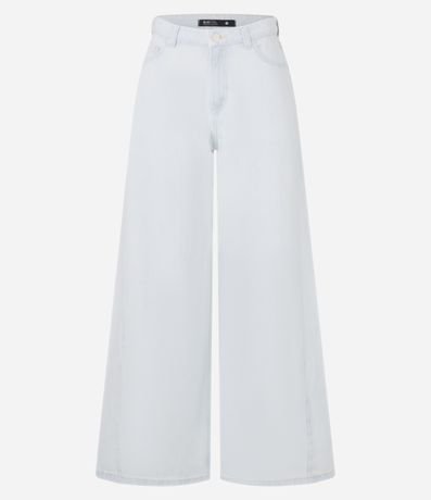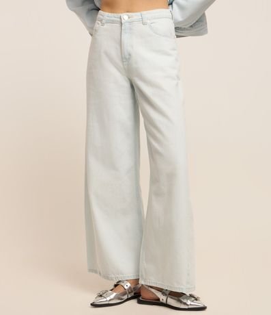 Calça Palazzo em Jeans Delavê com Recorte na Perna