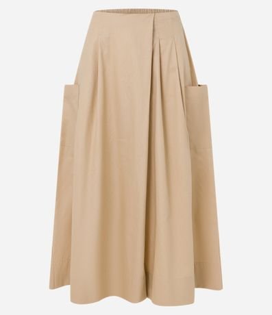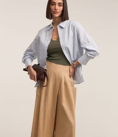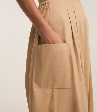 Calça pantacourt ampla em tricoline, com bolsos laterais grandes e superfície sem estampa. A peça também conta com cós elástico nas costas.