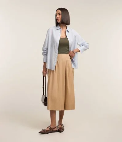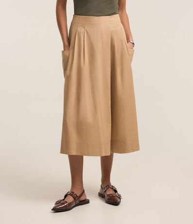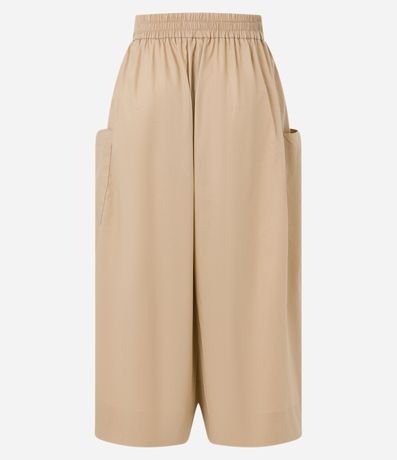 Calça Pantacourt Ampla em Tricoline com Bolsos Grandes Laterais