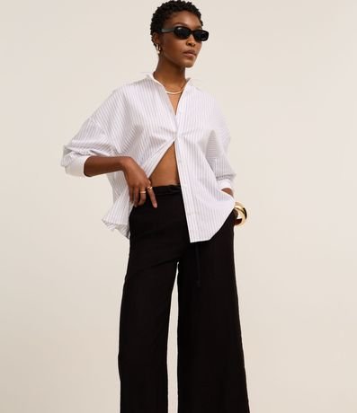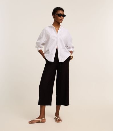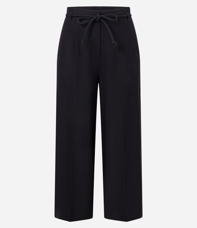 Ref: Calça feminina de modelo pantacourt, confeccionada em viscose certificada e com corte alfaiatado. Possui detalhe de amarração na cintura.
