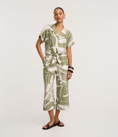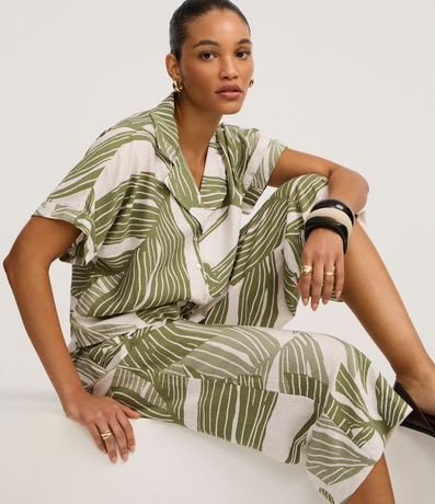 Ref: Calça pantacourt, confeccionada viscose, com elástico no cós e estampa de folhagens. Este produto possui viscose certificada em sua composição, sendo ambientalmente mais responsável.