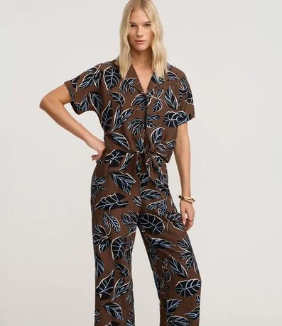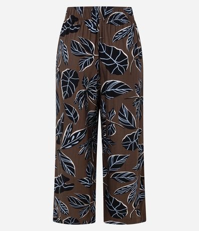 Calça pantacourt, confeccionada em viscose, com elástico no cós e estampa de folhagens. Este produto possui viscose certificada em sua composição, sendo ambientalmente mais responsável.