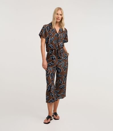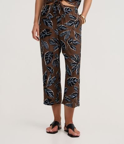 Calça Pantacourt em Viscose com Estampa Folhagem