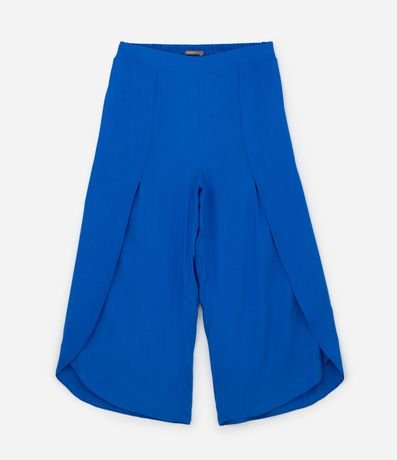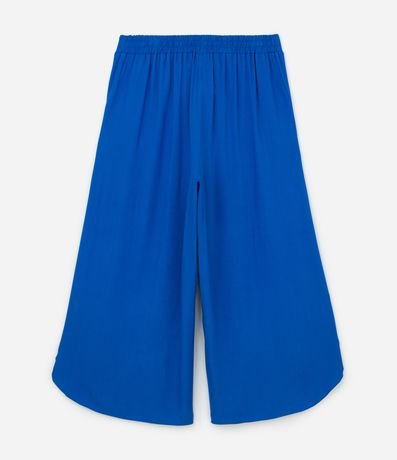 Calça pantacourt confeccionada em viscose mais sustentável e sem estampa. A calça tem fendas frontais, elástico nas costas, cós liso na frente e barra assimétrica.