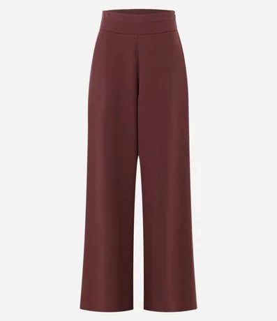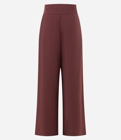 Calça feminina alfaiatada no modelo pantalona com cós liso e pregas.