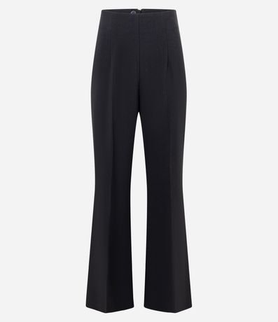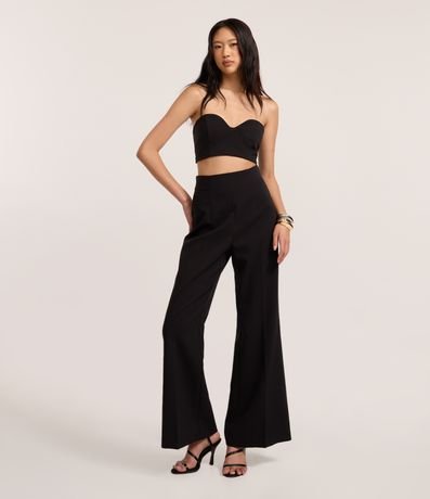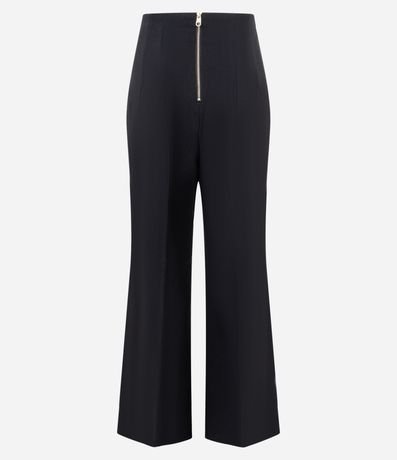 Calça pantalona alfaiataria, sem cós, confeccionada em tecido plano, com pregas e frisos. Possui fechamento por zíper tratorado atrás. Este produto possui viscose certificada em sua composição, sendo ambientalmente mais responsável.