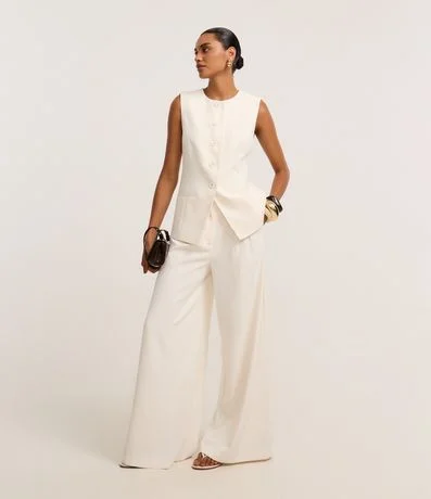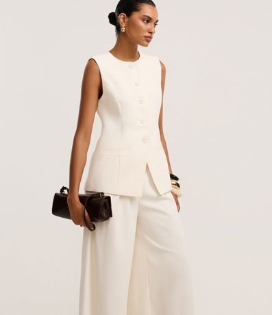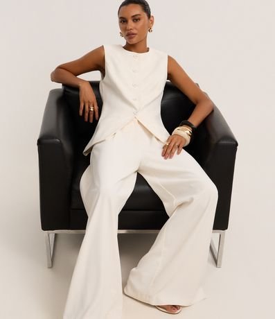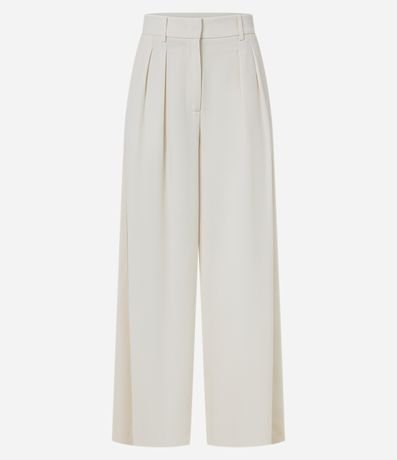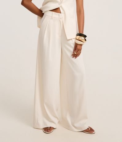 Ref: Calça pantalona de corte alfaitado, confeccionado em tecido plano, com passantes no cós, fechamento tradicional, elástico e amarração no cós. Conta com pregas frontais e bolsos falsos.