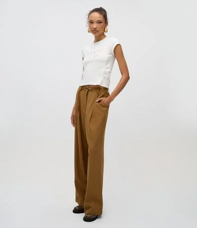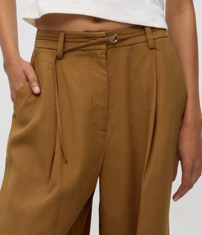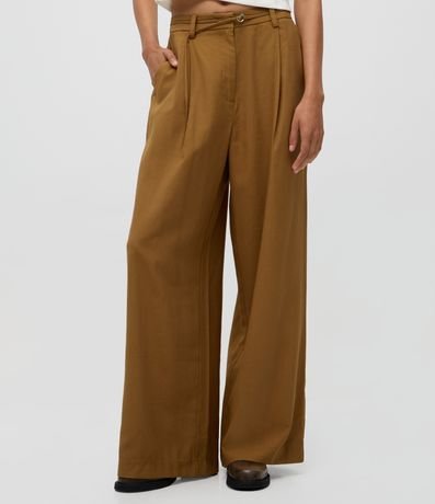 Calça pantalona alfaiatada em viscose texturizada, com caimento amplo e elegante. Possui cós com passantes, pregas frontais e cinto fino aplicado, ideal para compor produções modernas e sofisticadas. Confortável, versátil e confeccionada em viscose certificada de menor impacto ambiental.